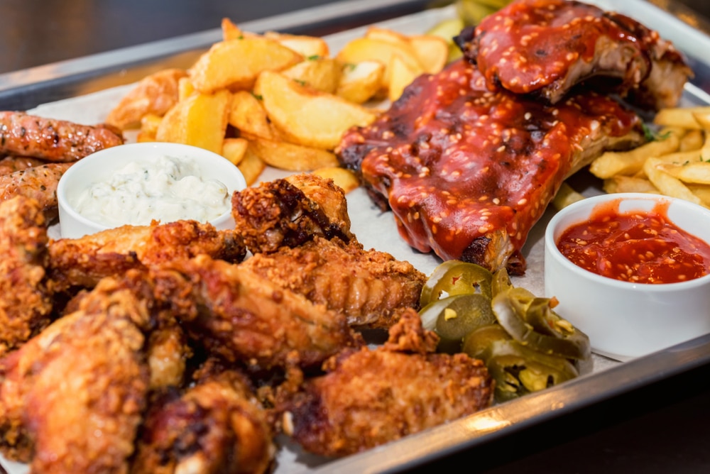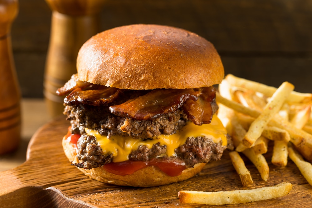 Juicy burger topped with crispy bacon, cheddar, and tangy BBQ sauce.