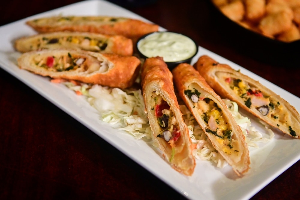Crispy rolls stuffed with black beans, chicken, corn, and pepper jack.